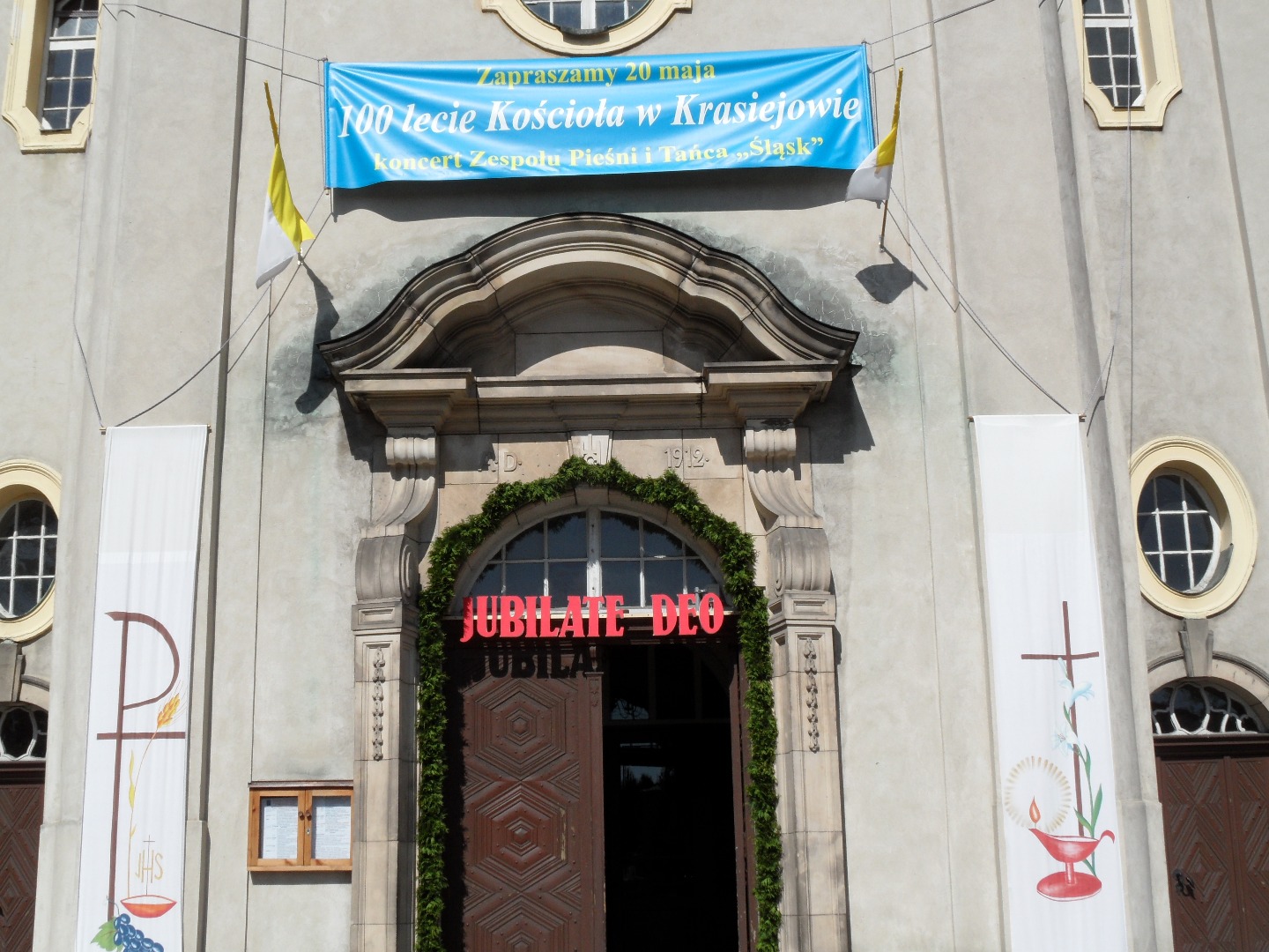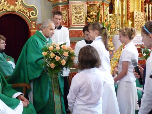 W dniu 20.05 w Krasiejowie miała miejsce niebywała uroczystość związana z obchodami 100 - lecia kościoła. O godz. 11.00 odbyła się uroczysta msza święta koncelebrowana, której przewodniczył ks. biskup Andrzej Czaja. Na uroczystość zaproszeni byli min. ks. proboszcz emeryt Alojzy Malcherek, wywodzący się z naszej parafii prof. dr hab. Helmut Juros i siostry zakonne, księża z dekanatu, Mirosław Lipowicz - redemptorysta z Krakowa, który prowadził Triduum Jubileuszowe, a także poczty sztandarowe strażaków z 3 miejscowości naszej parafii oraz Szkoły Podstawowej. Mszę uświetnił występ orkiestry dętej z miejscowości, w której urodził się obecny proboszcz Józef Gorka . Zabrakło pochodzącego z Krzyżowej Doliny ks. Mariusza Sobka, który niestety przebywa obecnie w szpitalu. W jego intencji modlił się także biskup A. Czaja.