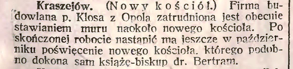 1919 - Karl Spiegel z Reichthal - współwłaściciel firmy Gebr. K.A. SPIEGEL Orgelbau zbudował 25-głosowe organy dla kościoła w Krasiejowie.