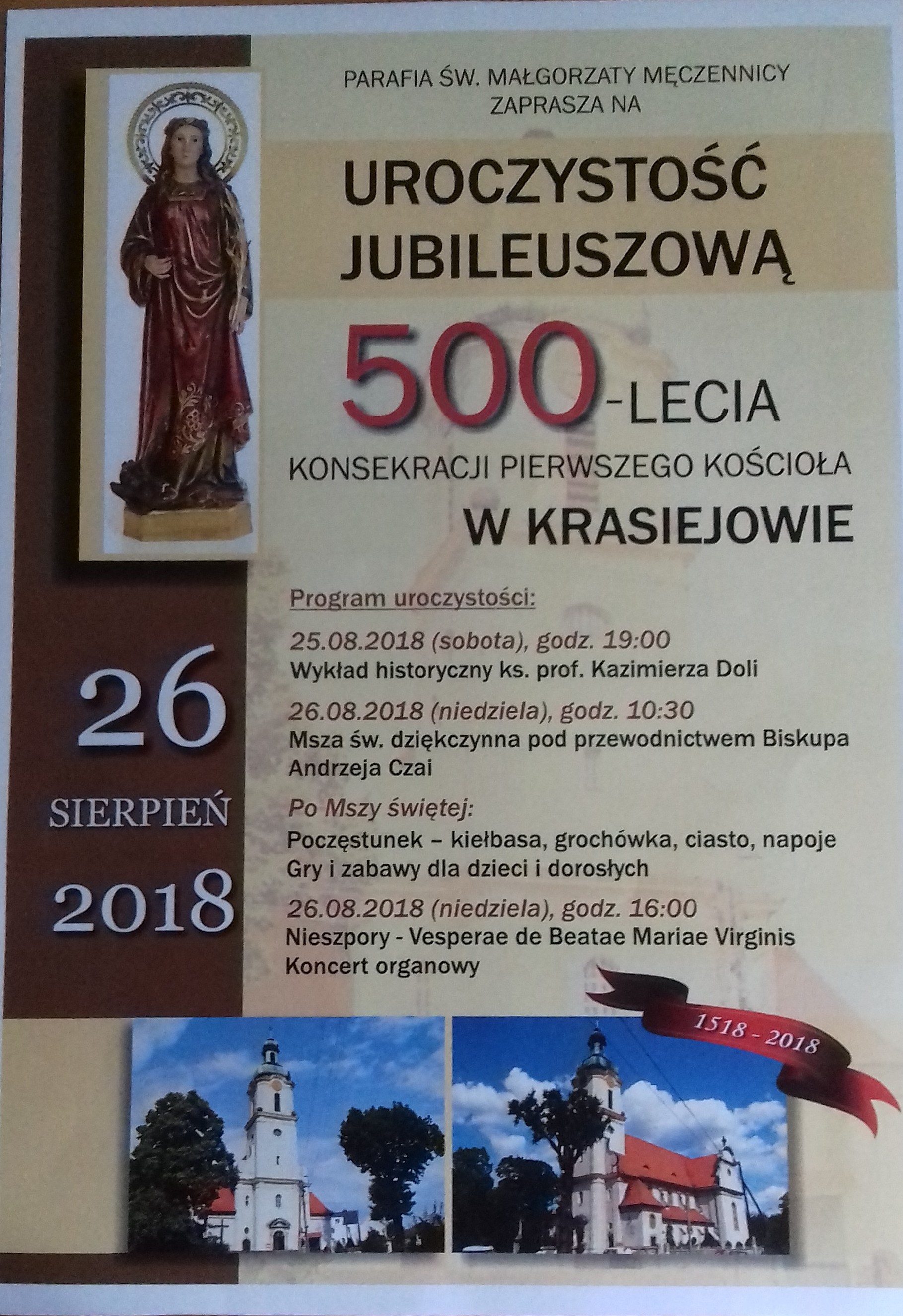 W dniach 25-26.08.2018 obchodzono uroczyście 500-lecie kościoła w Krasiejowie (relacja i fotoreportaż kliknij).