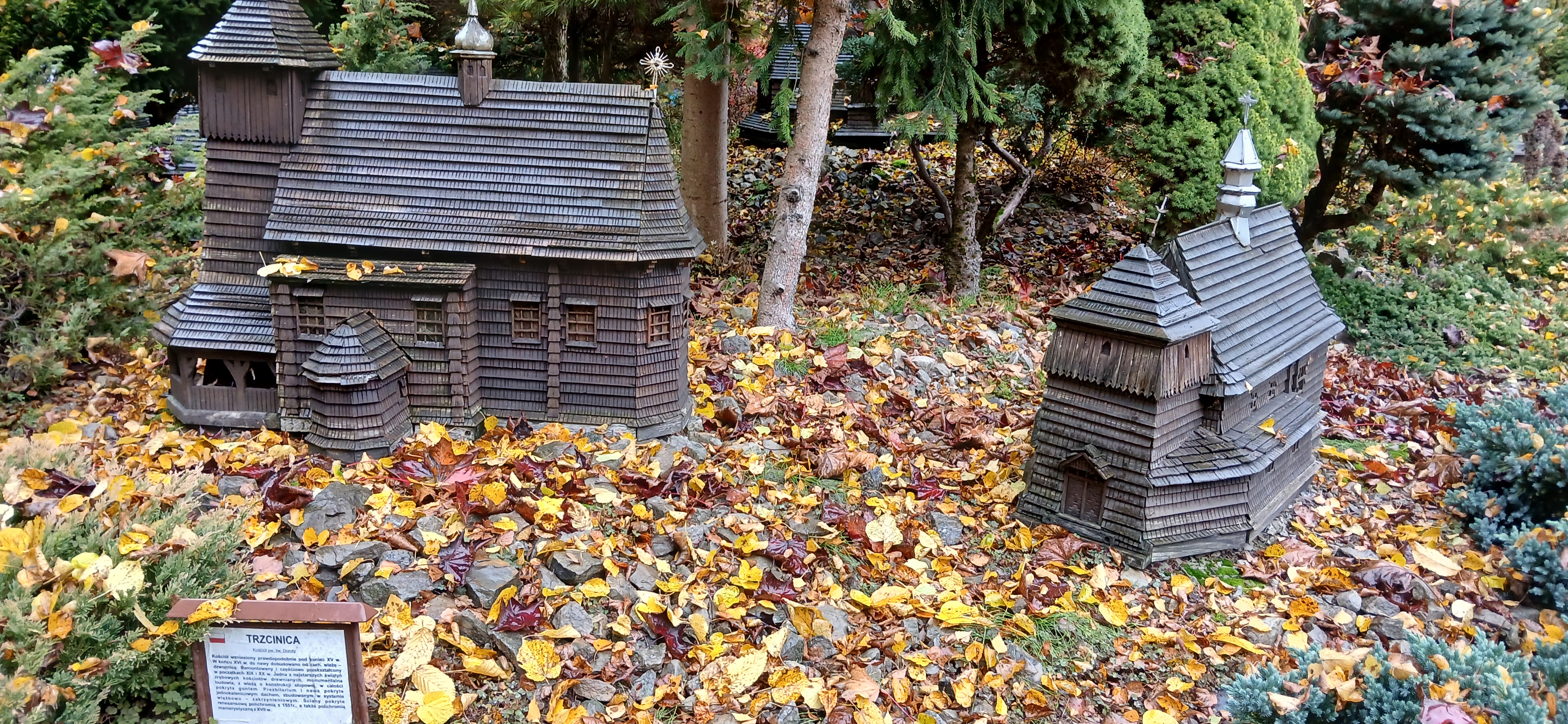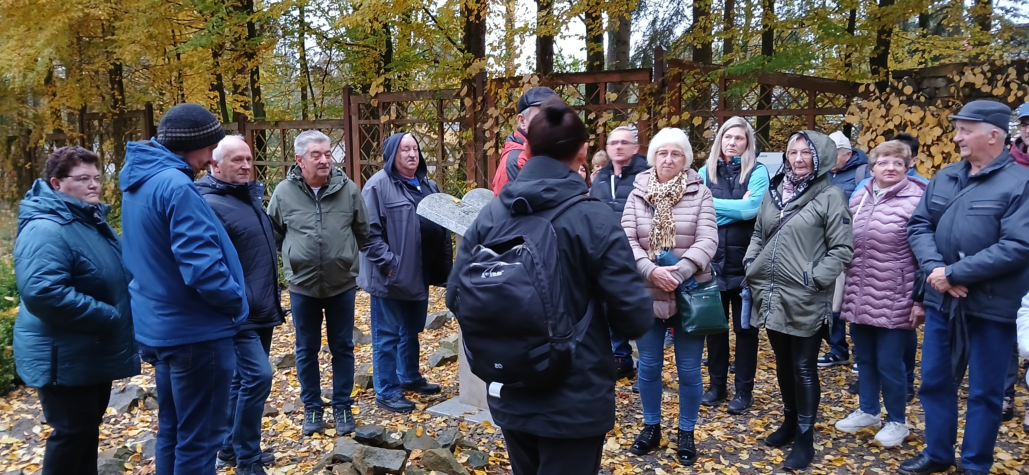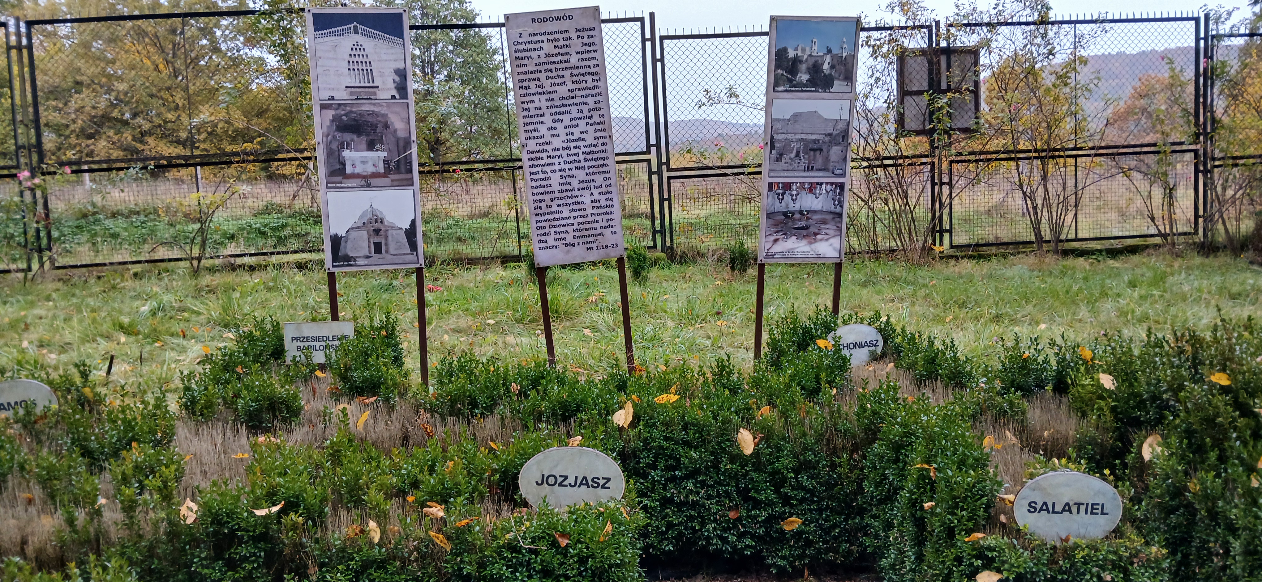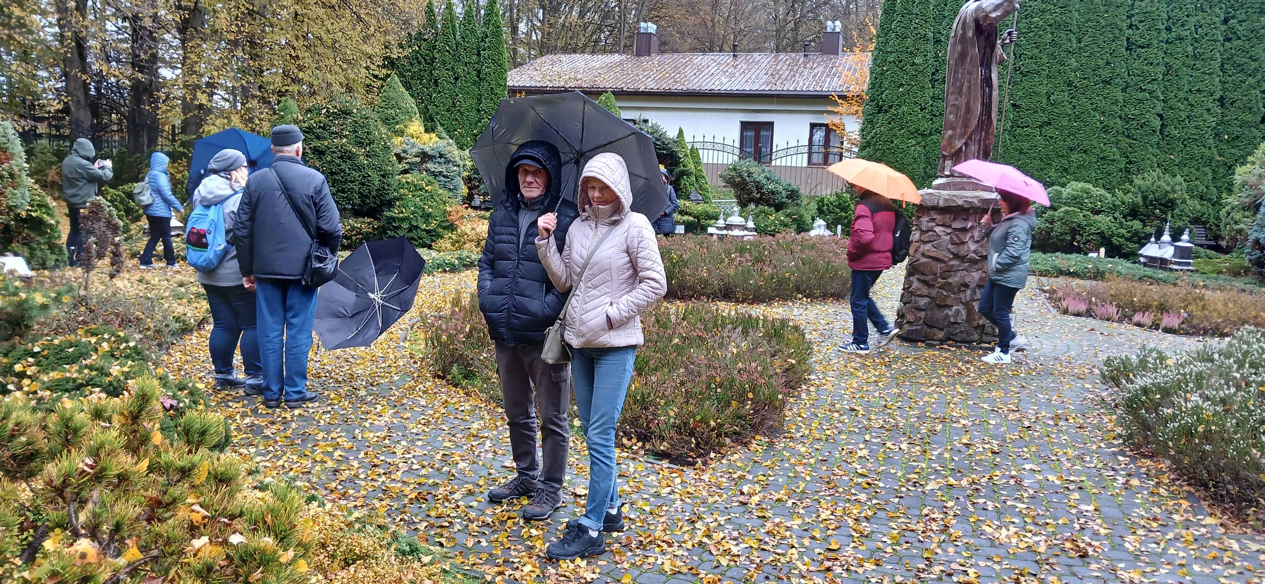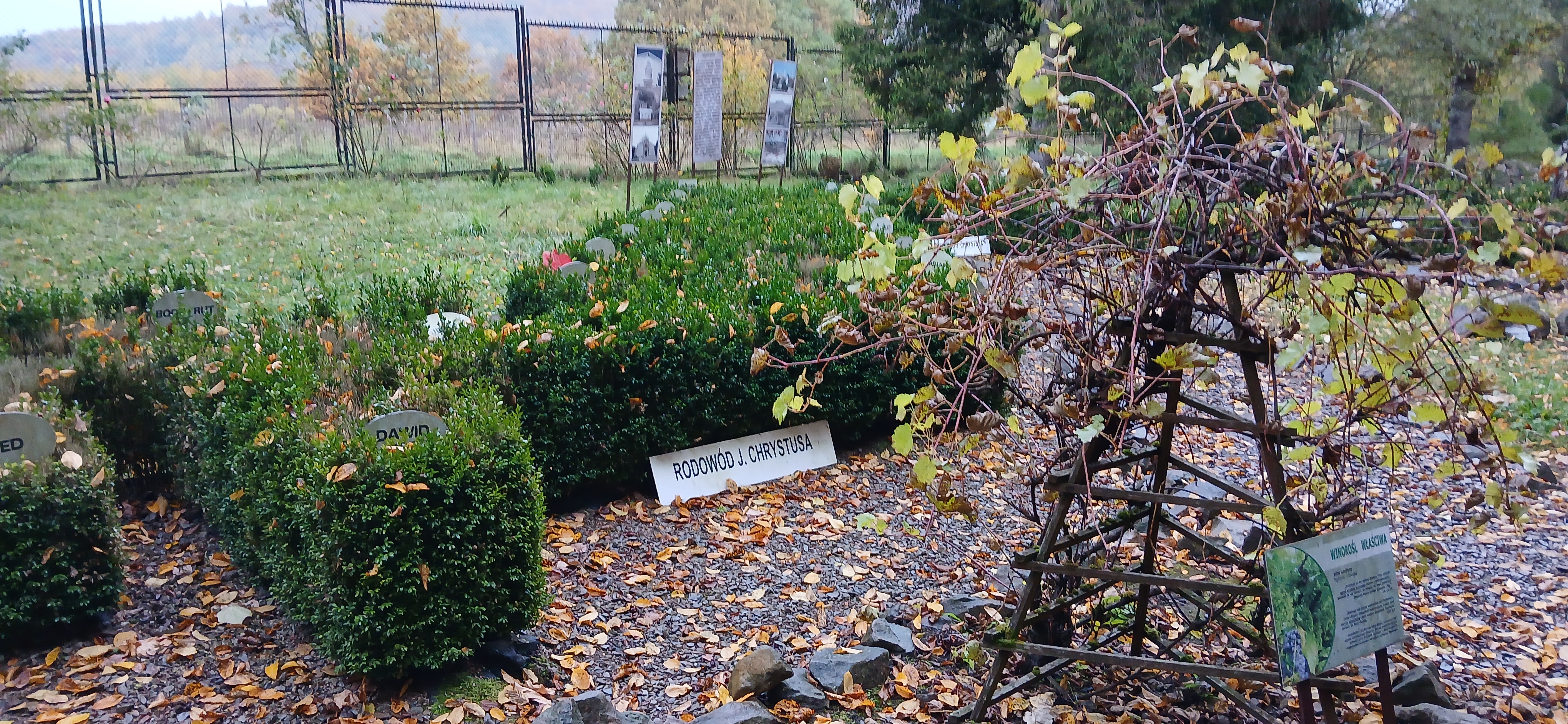 W sobotę dnia18 października zwiedzaliśmy ogród biblijny Caritasu w Myczkowcach, w którym zgromadzono roślinność typową dla obszarów z ksiąg biblijnych. Spacerując alejkami przypomnieliśmy sobie rodowód i działalność Chrystysa, przeżywaliśmy Jego drogę krzyżową na Golgotę, ukrzyżowanie i zmartwychwstanie. W ogrodzie pojawiły się miejsca związane z Jezusem, z kamieni ułożono wzgórze Synaj, wykonano koryto rzeki Jordan, posadzono roślinność pustynną, pojawił się motyw Jana Chrzciciela i makiety Świątyni Salomona i "Ściany płaczu". Po opuszczeniu tego urokliwego miejsca udaliśmy się do ogrodu miniatur, w którym zgromadzono miniaturki obiektów sakralnych - kościołów i cerkwi z regionu bieszczadzkiego wykonane przez jednego artystę. Tego dnia skropiły nas lekko krople deszczu, co nie przeszkodziło nam w zwiedzaniu.