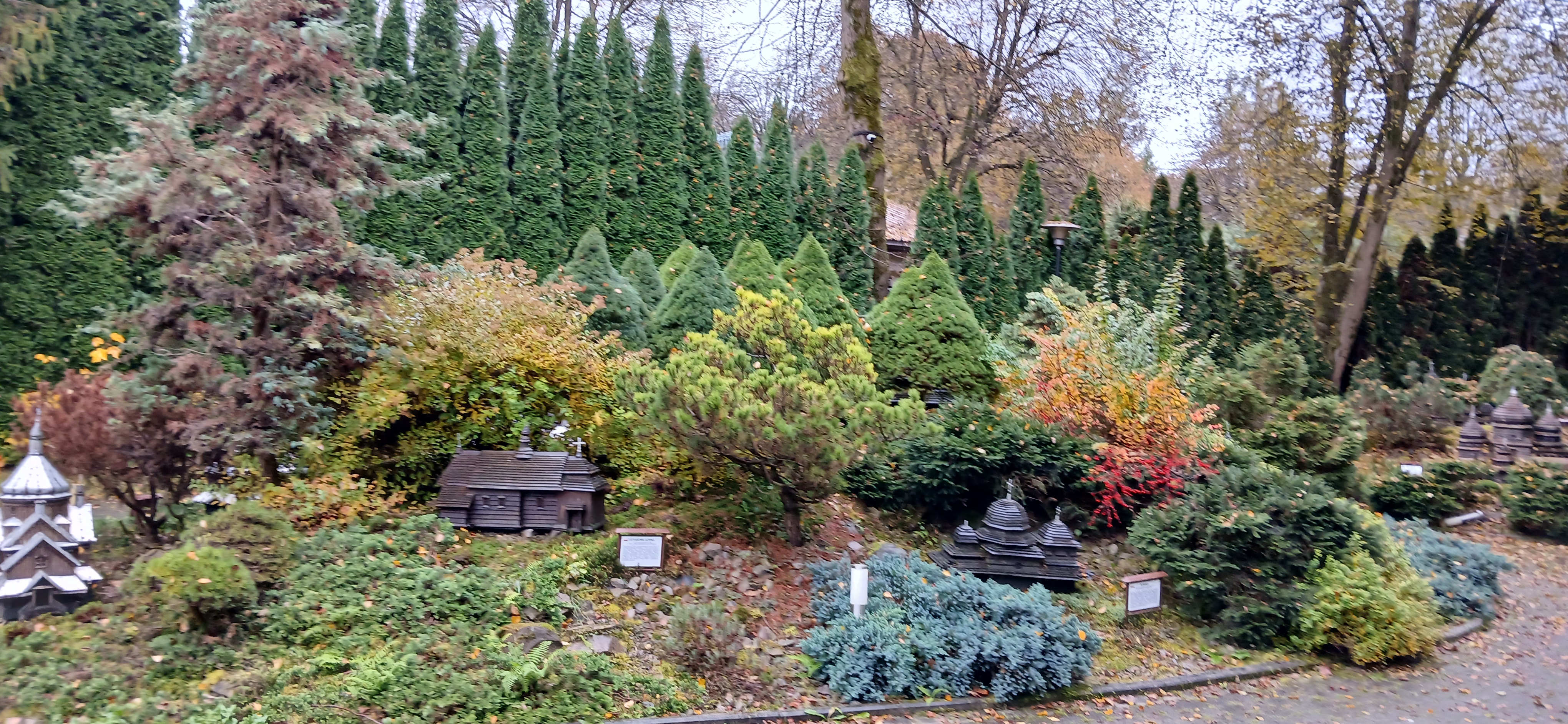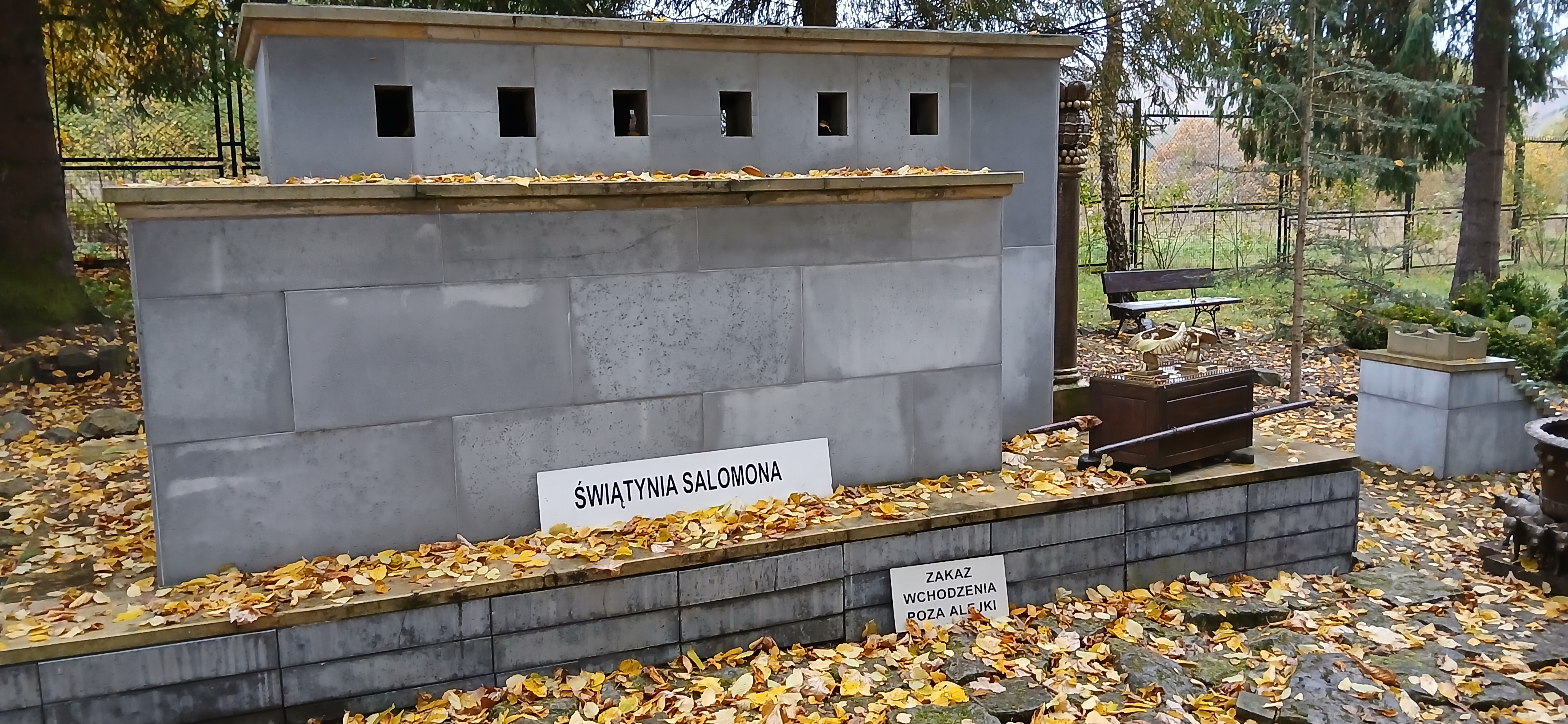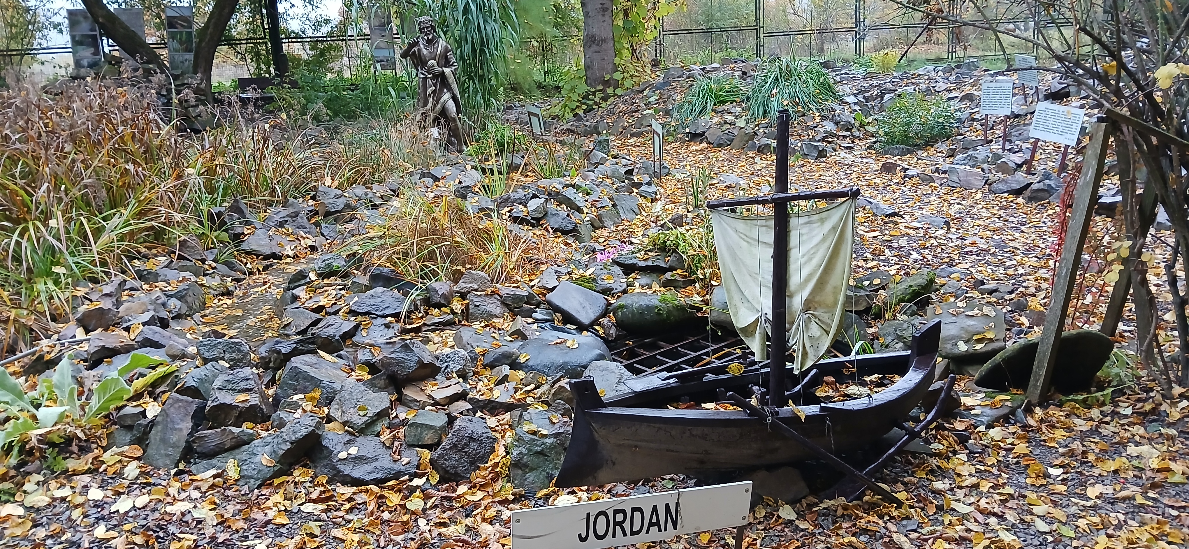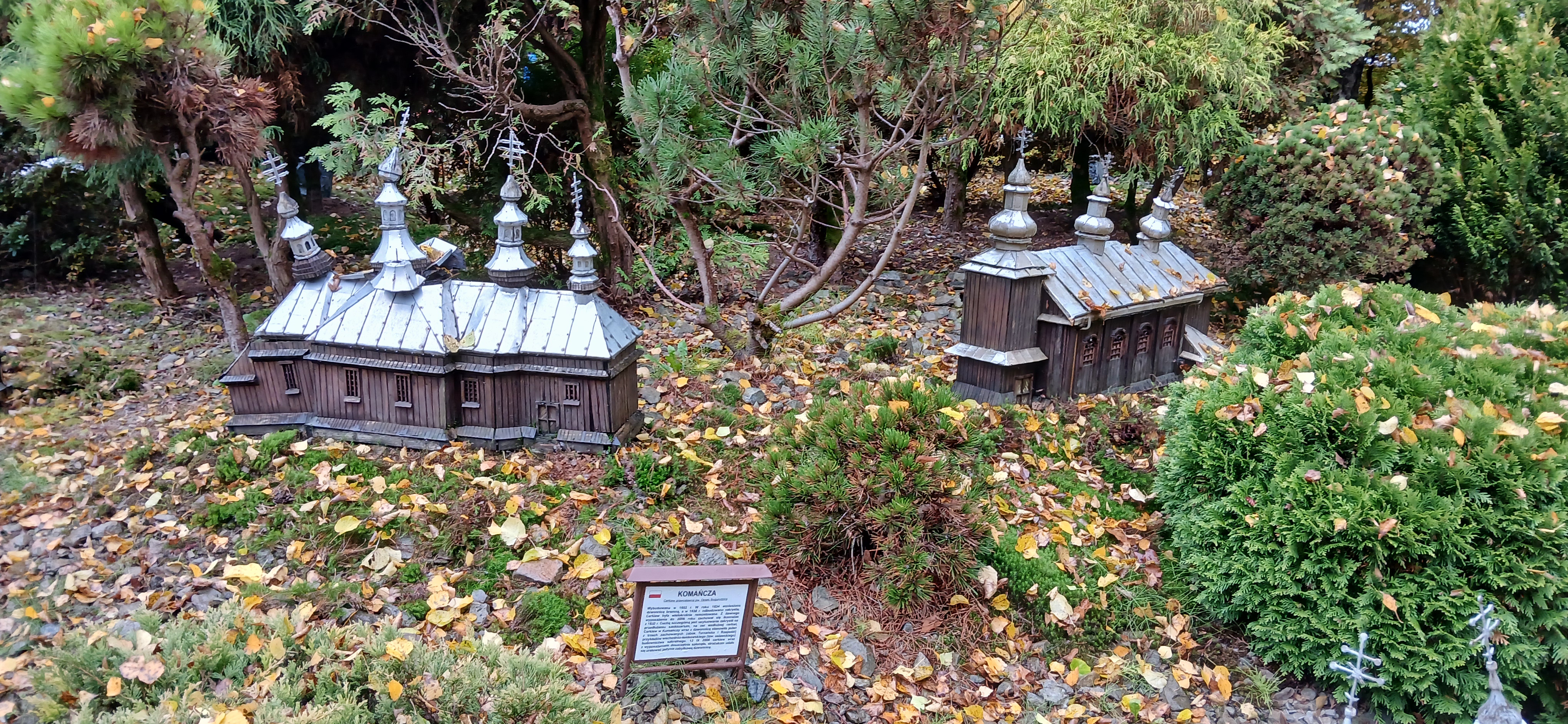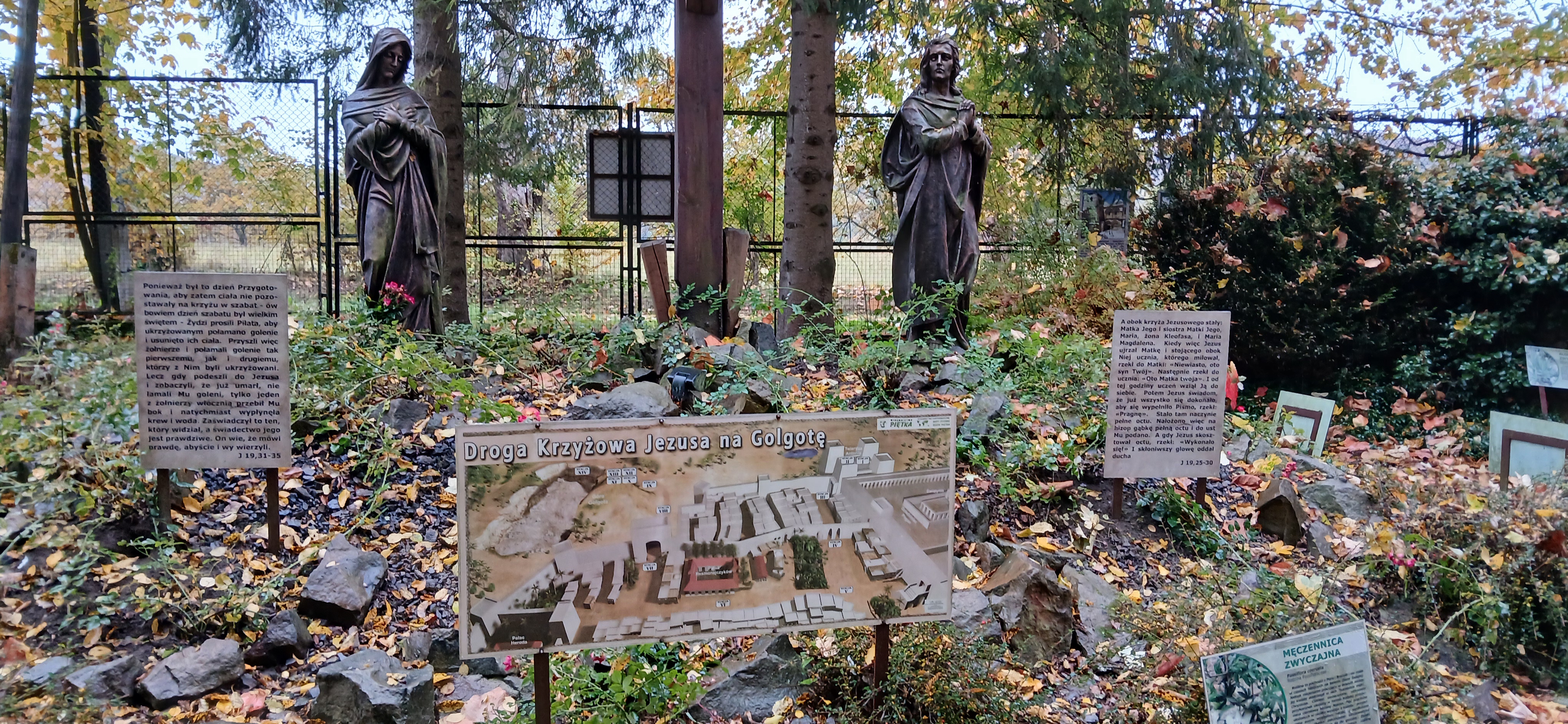 W sobotę dnia18 października zwiedzaliśmy ogród biblijny Caritasu w Myczkowcach, w którym zgromadzono roślinność typową dla obszarów z ksiąg biblijnych. Spacerując alejkami przypomnieliśmy sobie rodowód i działalność Chrystysa, przeżywaliśmy Jego drogę krzyżową na Golgotę, ukrzyżowanie i zmartwychwstanie. W ogrodzie pojawiły się miejsca związane z Jezusem, z kamieni ułożono wzgórze Synaj, wykonano koryto rzeki Jordan, posadzono roślinność pustynną, pojawił się motyw Jana Chrzciciela i makiety Świątyni Salomona i "Ściany płaczu". Po opuszczeniu tego urokliwego miejsca udaliśmy się do ogrodu miniatur, w którym zgromadzono miniaturki obiektów sakralnych - kościołów i cerkwi z regionu bieszczadzkiego wykonane przez jednego artystę. Tego dnia skropiły nas lekko krople deszczu, co nie przeszkodziło nam w zwiedzaniu.