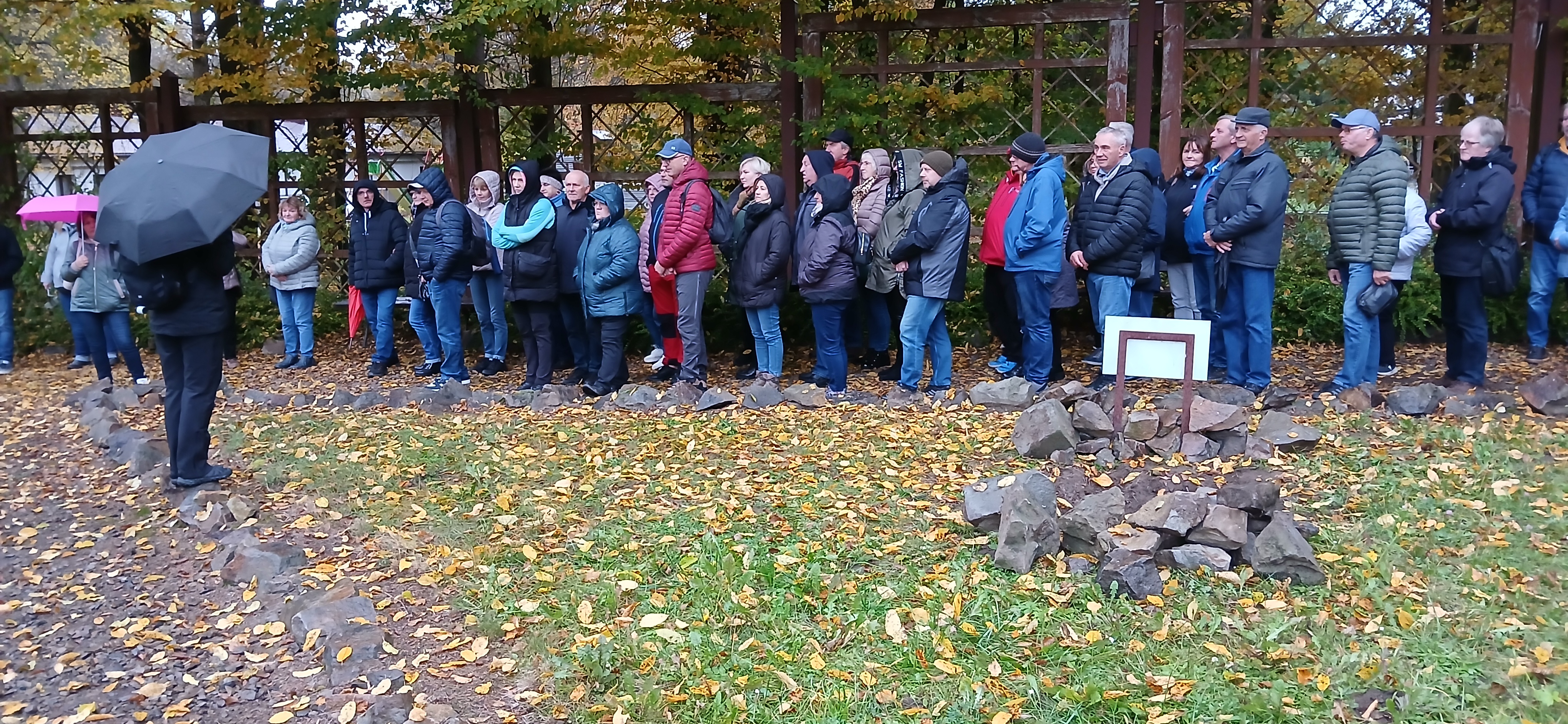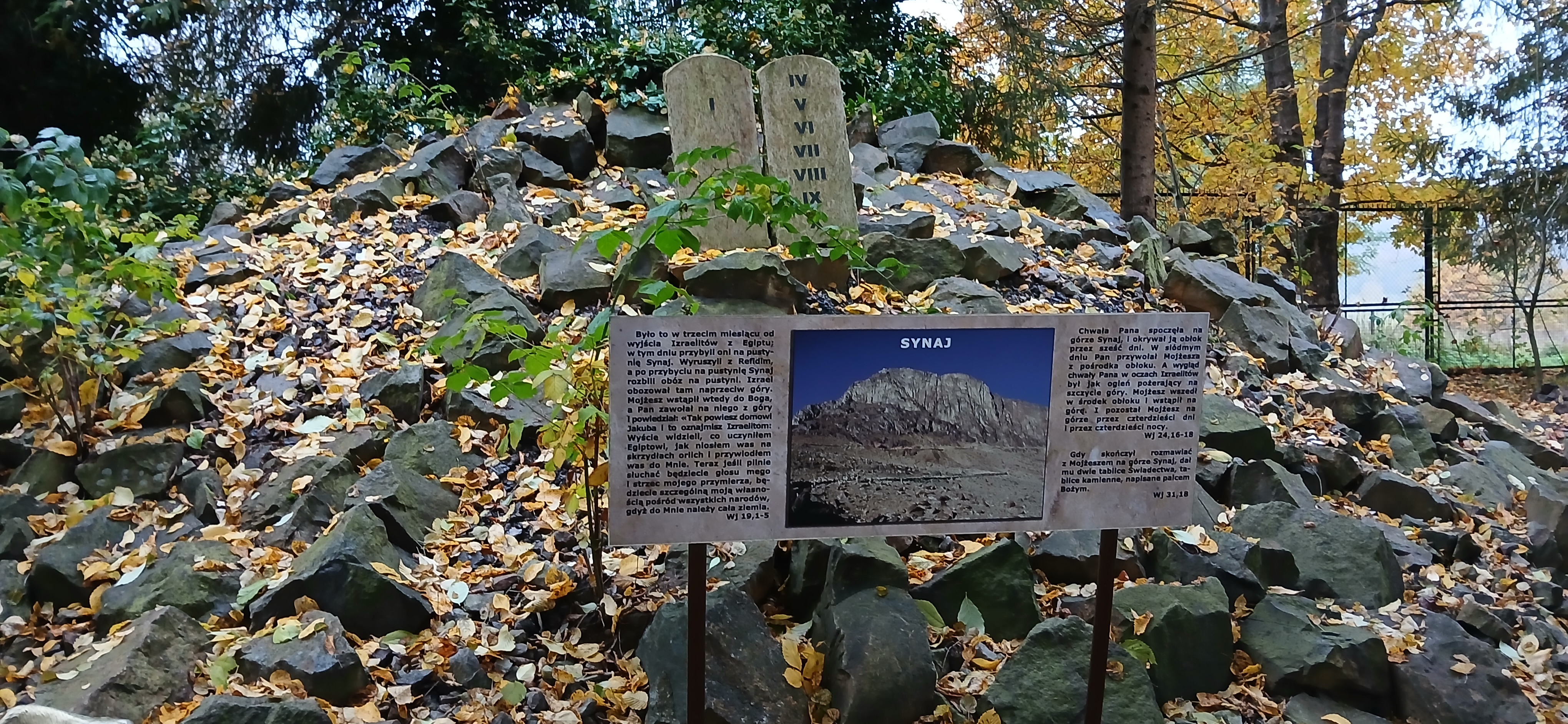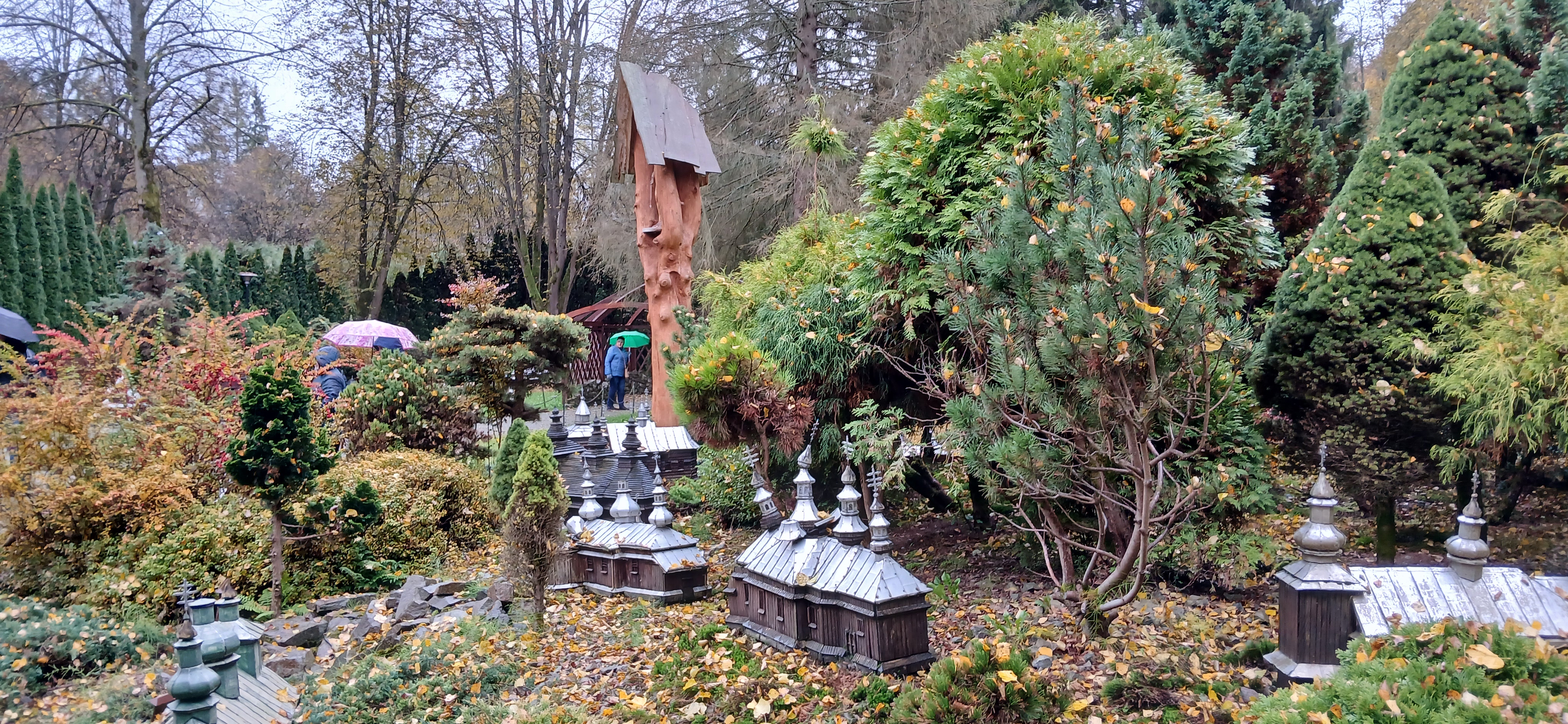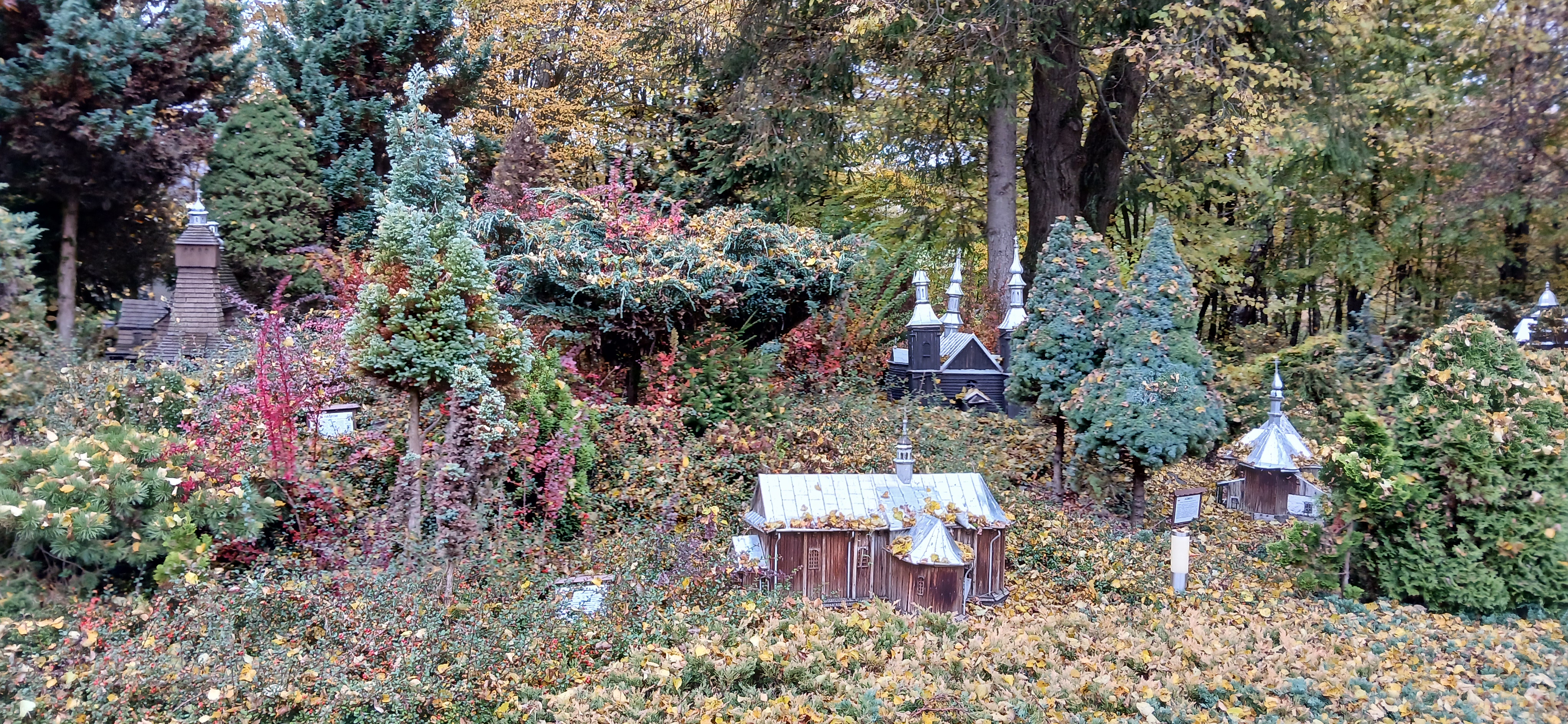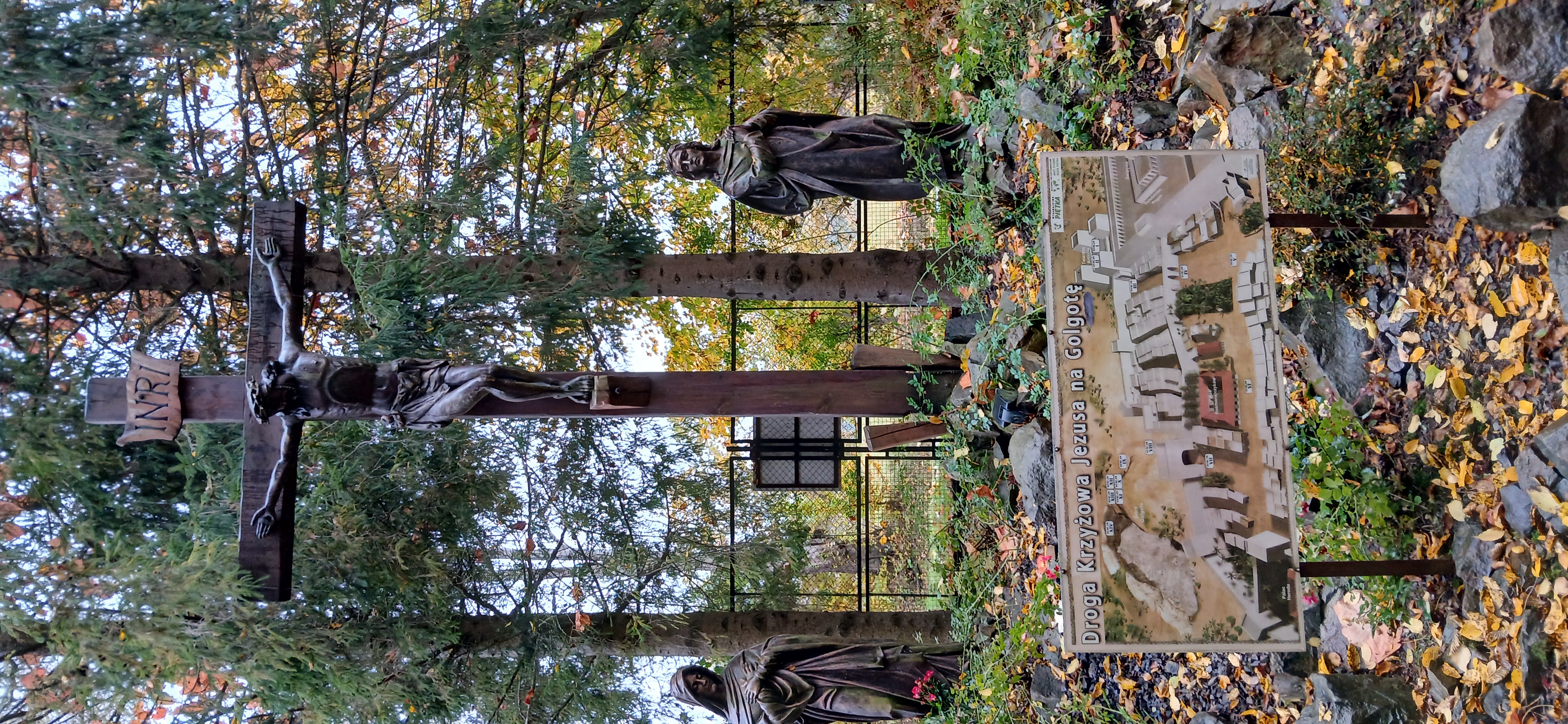 W sobotę dnia18 października zwiedzaliśmy ogród biblijny Caritasu w Myczkowcach, w którym zgromadzono roślinność typową dla obszarów z ksiąg biblijnych. Spacerując alejkami przypomnieliśmy sobie rodowód i działalność Chrystysa, przeżywaliśmy Jego drogę krzyżową na Golgotę, ukrzyżowanie i zmartwychwstanie. W ogrodzie pojawiły się miejsca związane z Jezusem, z kamieni ułożono wzgórze Synaj, wykonano koryto rzeki Jordan, posadzono roślinność pustynną, pojawił się motyw Jana Chrzciciela i makiety Świątyni Salomona i "Ściany płaczu". Po opuszczeniu tego urokliwego miejsca udaliśmy się do ogrodu miniatur, w którym zgromadzono miniaturki obiektów sakralnych - kościołów i cerkwi z regionu bieszczadzkiego wykonane przez jednego artystę. Tego dnia skropiły nas lekko krople deszczu, co nie przeszkodziło nam w zwiedzaniu.