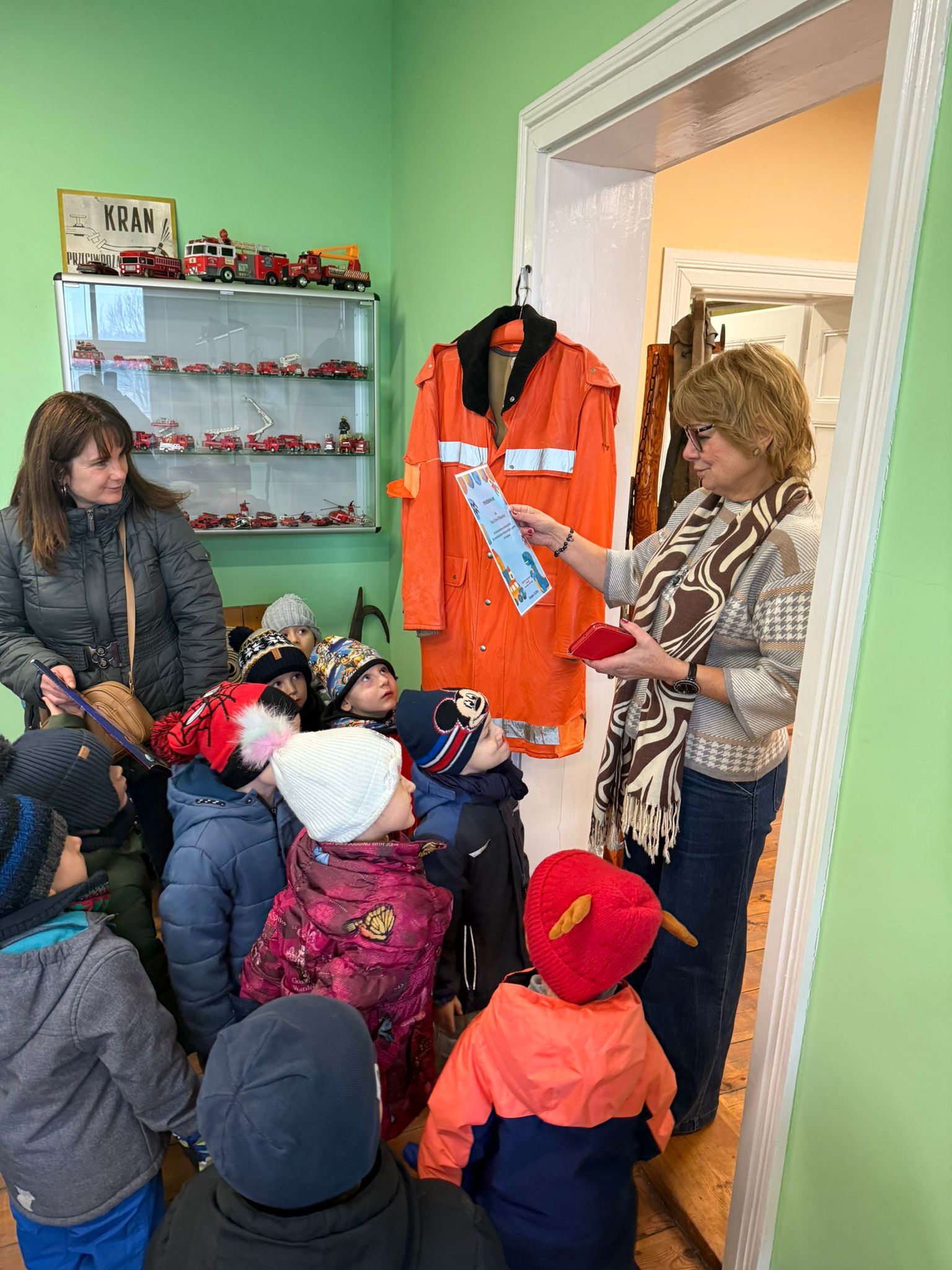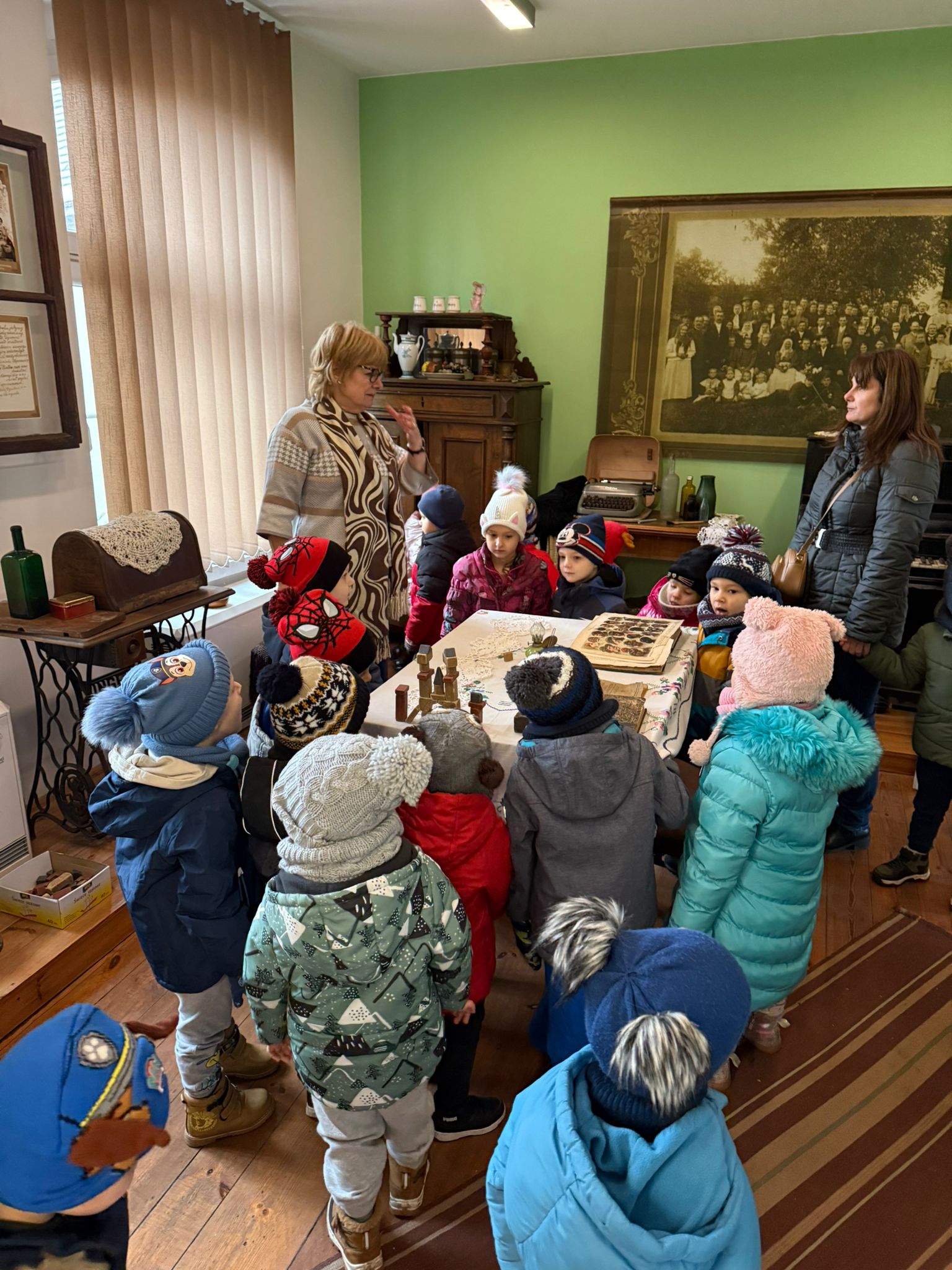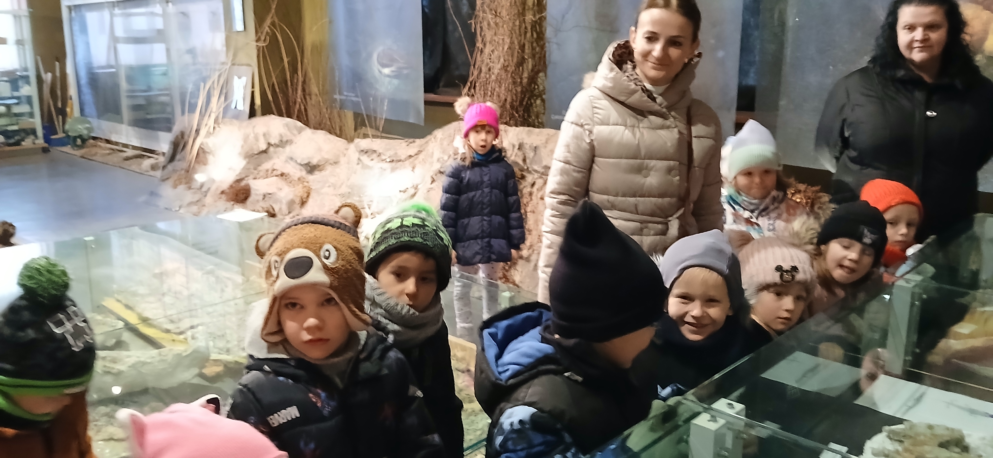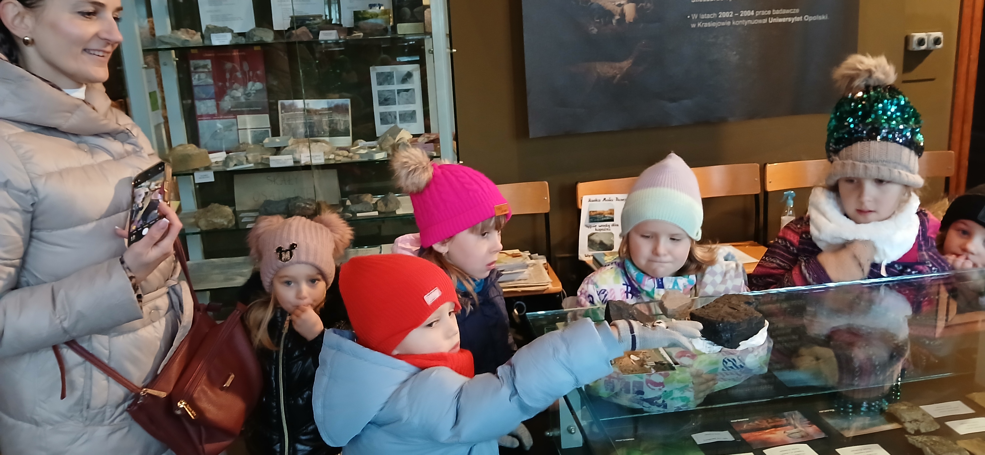 W dniu 3 grudnia dwie grupy przedszkolaków (około 50 osób) wraz z opiekunkami przybyły do Muzeum Paleontologicznego i Izby Regionalnej w Krasiejowie na zajęcia edukacyjne. Na placu szkolnym rozpoznawały prehistoryczne zwierzęta, które żyły na tym terenie przed 225 milionami lat i odróżniały je od ewolucyjnie późniejszych gatunków dinozaurów, których modele znajdują się na placu szkolnym. Po wejściu do sali muzealnej przywitał dzieci nasz Silesaurus opolensis, który założył na te okoliczność odświętną czapeczkę. Oprowadzająca omówiła, kim jest paleontolog i na czym polega jego praca, pokazywała skamieniałości, a dzieci rozpoznawały części metopozaura w szklanej gablocie. Następnie wspólnie szukali odpowiedzi na pytanie, czy w Krasiejowie mieszkali górnicy i czym różni się ich praca od pracy paleontologa. Dzieci rozpoznawały surowce skalne: węgiel kamienny, wapień, glinę, żwir, bazalt i rudy żelaza, a więc te wszystkie, które górnicy wydobywają obecnie lub były eksploatowane na Górnym Śląsku i na Opolszczyźnie. Kustosz porównała strój i wyposażenie paleontologa i górnika, zademonstrowała latarkę czołówkę i kask ochronny. Wyjaśniła, skąd wzięła się nazwa ulicy Cegielnianej i kto odkrył te lokalne skarby. Po zwiedzeniu muzeum na parterze dzieci udały się do sali regionalnej, aby omówić wybrane zagadnienia z historii wsi i obejrzeć sprzęty, którymi dawniej posługiwali się mieszkańcy, wykonujące różne zanikające już zawody. Dzieci dowiedziały się, ile kościołów było w naszej wsi, dlaczego na wystawie znajdują się duże banknoty i świadectwa szkolne niemieckie, jak wyglądała dawna zabudowa i kiedy był wielki pożar. Maluszkom bardzo podobała się też wystawa z ekspozycją zabawek- przeróżnych samochodów strażackich z prywatnej kolekcji Pana Malisza. Oprowadzająca otrzymała piękne podziękowanie od przedszkolaków. Na zakończenie dzieci z drugiej grupy ubrały odświętnie naszego silezaura kolorowymi bombkami i udały się w drogę powrotną do przedszkola. Zajęcia były dofinansowane z Budżetu Gminy Ozimek.